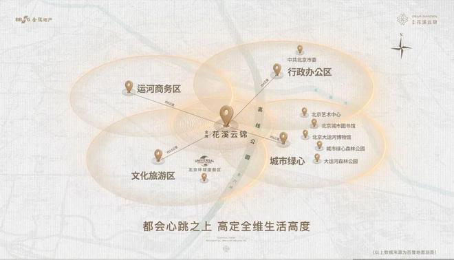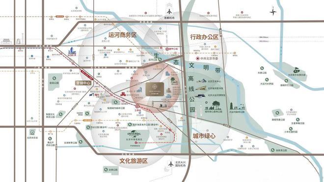 花溪云锦正落子于副中心这资源交汇的「四心之心」,运河商务区集聚全球500强,澎湃经济浪潮;向东,绿心公园与六环高线公园双绿肺环抱,重构自然与城市的呼吸尺度;向南,环球影城IP赋能文旅新经济;向北,行政办公区汇聚高智圈层。