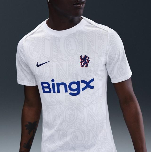 赛前训练服:球衣采用全白主色设计,提花暗纹为“LONDON”字样。值得一提的是,切尔西球迷希望将此训练服当做客场球衣使用。