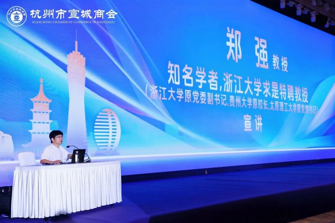 杭州市工商联联合杭州市宣城商会共同组织了“杭商大讲堂”。邀请知名学者、浙江大学求是特聘教授郑强带来《关于AI、新质生产力以及转型发展的理念与思考》专题演讲。