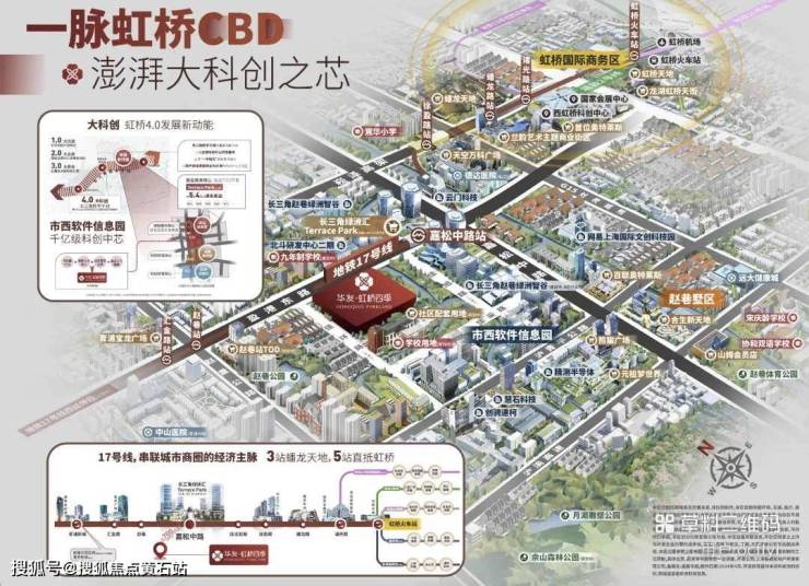 青浦区基于“一城两翼,一带三核”发展战略目标,正着力推进东翼(赵巷商业商务区+西虹桥商务区)发展为一流的现代服务业集聚区。并通过17号地铁线串联起三大核心节点,东起徐泾北斗产业基地,西到金泽华为研发基地,中部核心就是赵巷市西信息软件园,未来这条产业带上预期将会有海量人口导入。赵巷高新科创地持续补强大虹桥,成为推动经济发展的新引擎。